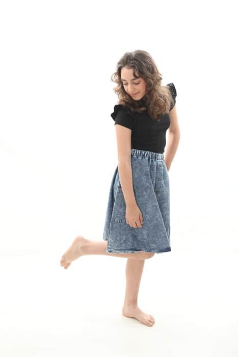 ג'ינס בהירחצאית ג'ינס ברך בנות