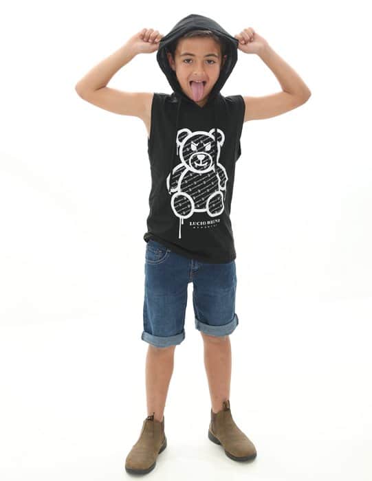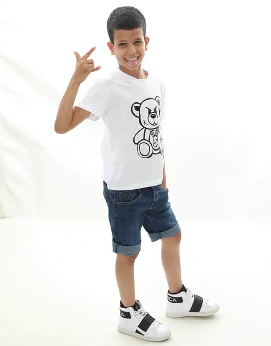 שחור כיתוב לבןמכנס בנים כיסים שחור